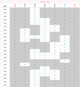 【今週の予約状況】11月3日(月)