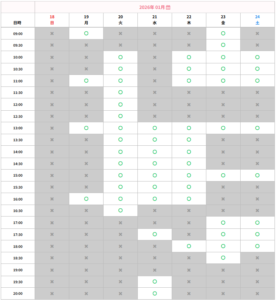【今週の予約状況】1月18日(日)